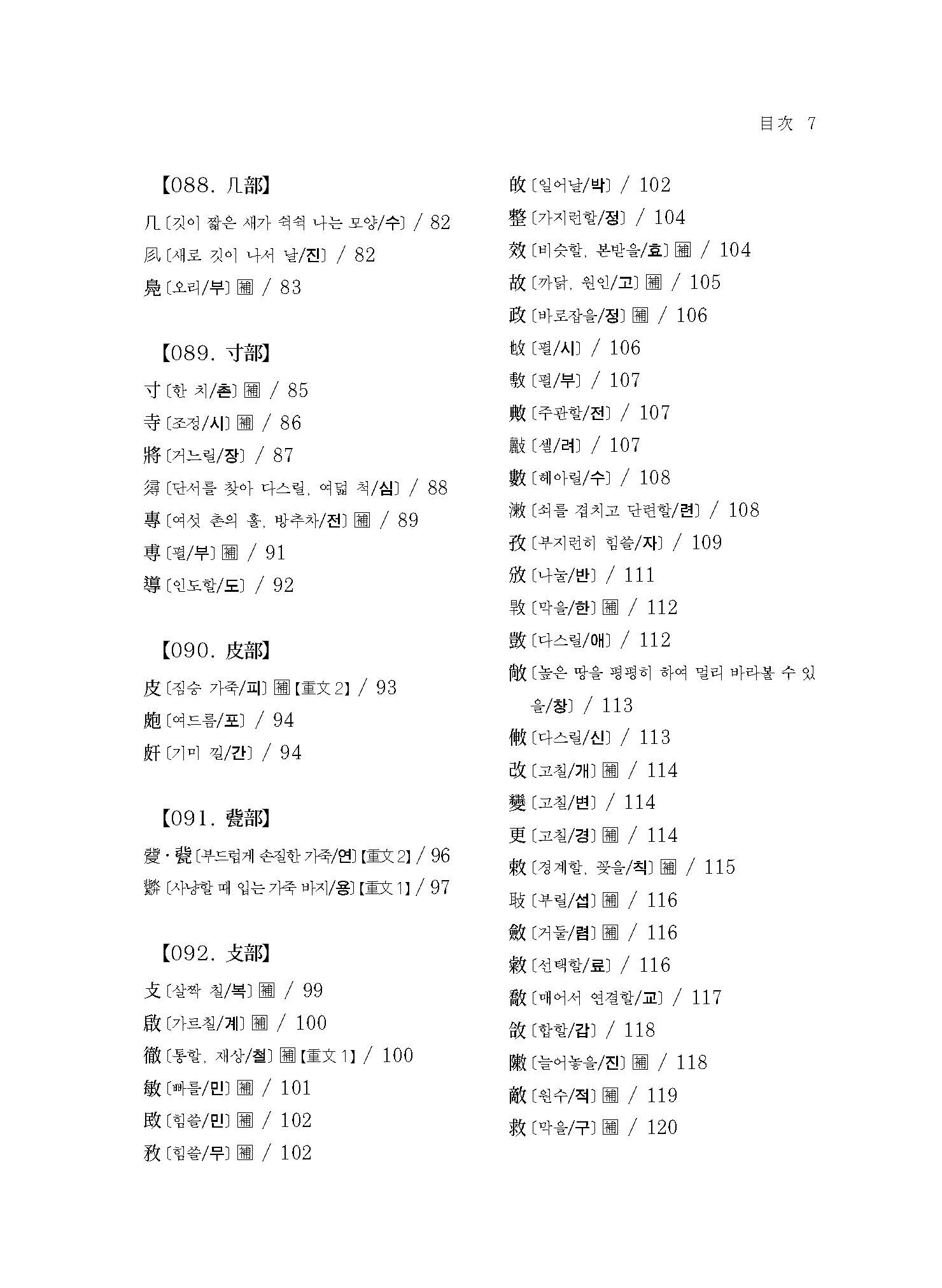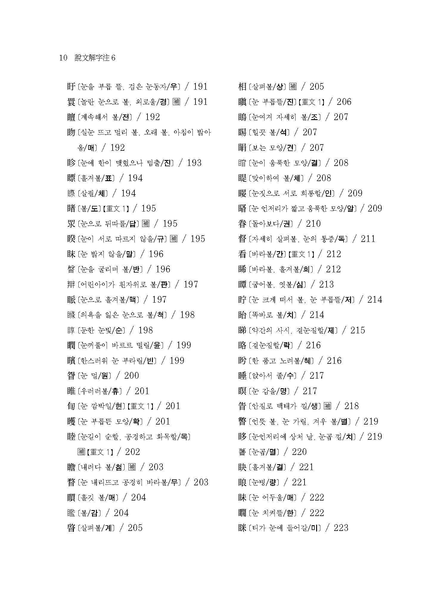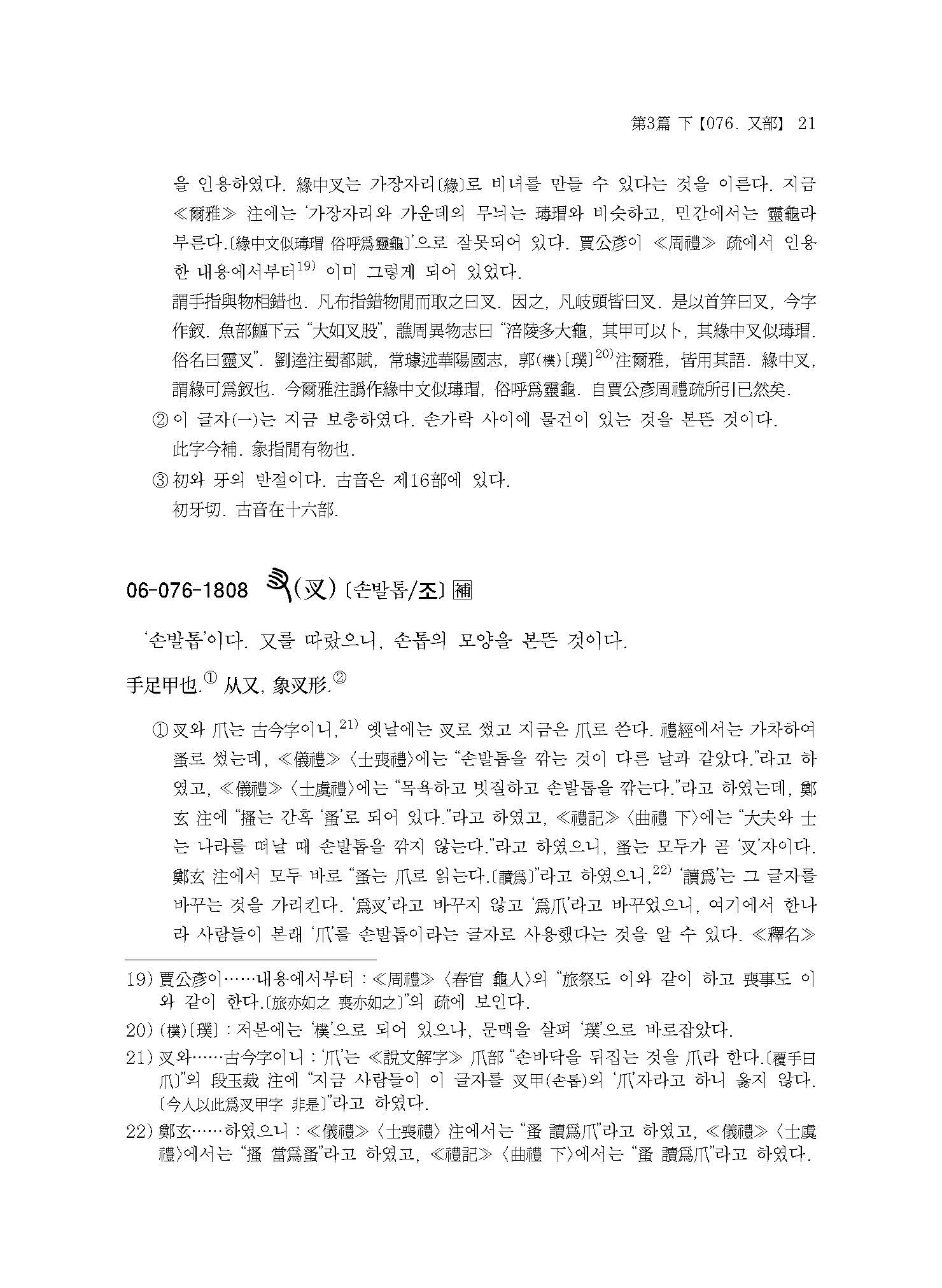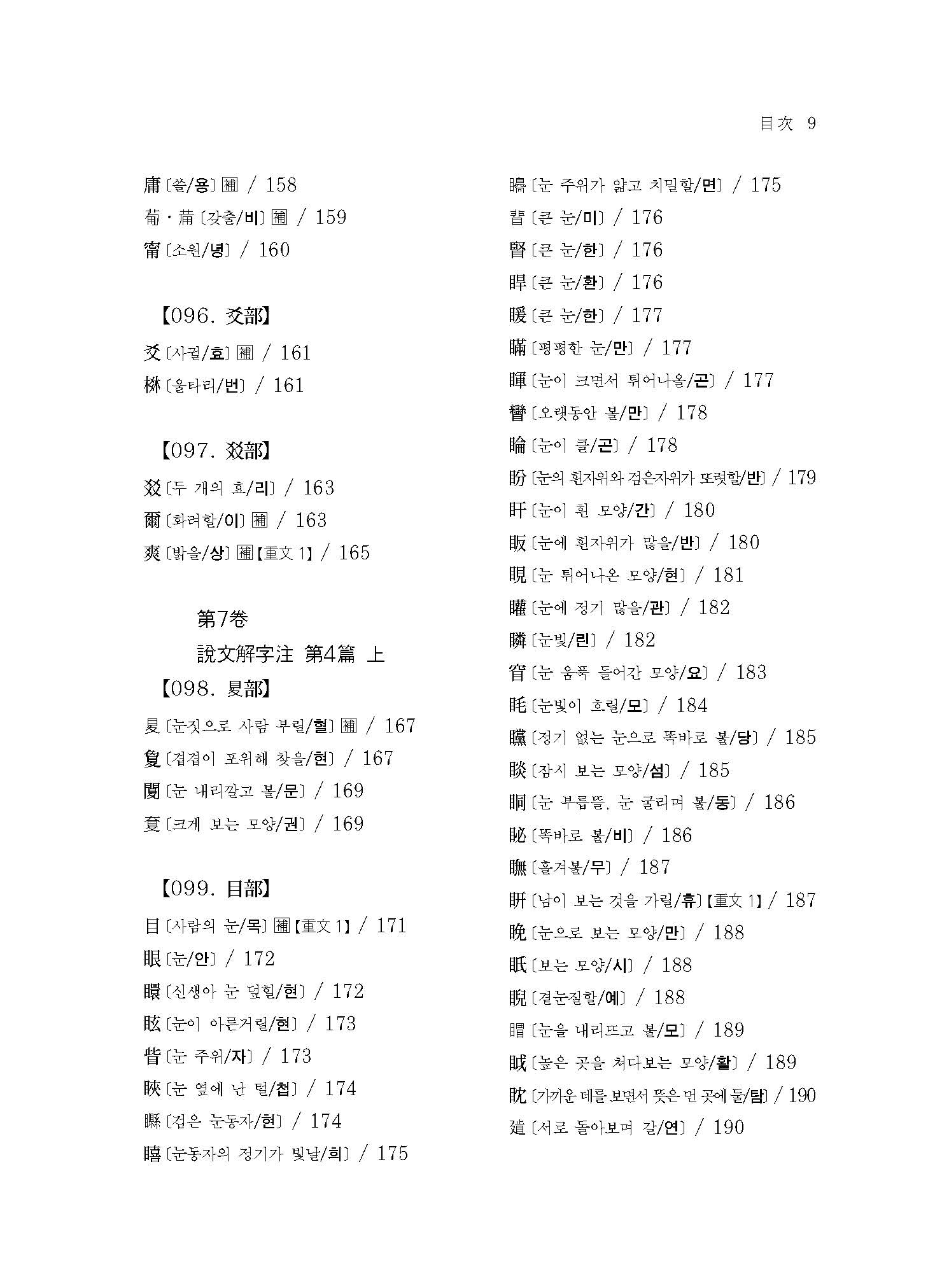 예컨대 본서에 실린 “【076. 又部】【077. ??部】【078. 史部】【079. 支部】【080. ??部】【081. 聿部】”의 경우 손의 모양 또는 손에 어떤 물건을 쥔 모양이다. 이러한 부수배열이 《설문해자》 전반에 걸쳐 적용되어 《설문해자》 전체가 하나의 쇠사슬처럼 서로 연결되어 있다.