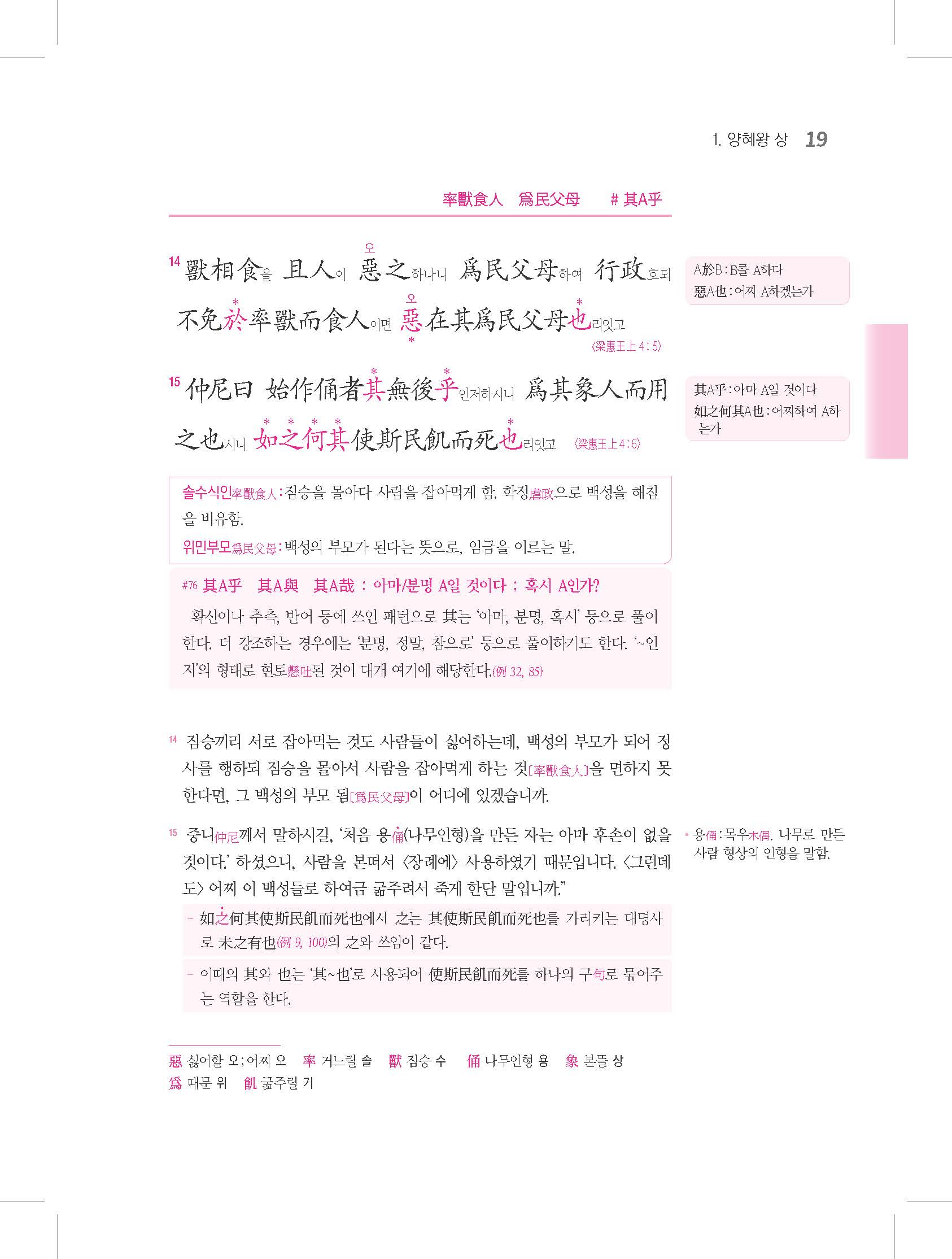 또한 전통 한문교육에서 중요한 방식이었던 ‘현토(懸吐)’를 충실히 반영하고, 동시에 구문 중심 분석이라는 서구적 접근법도 함께 활용하였습니다. 이 두 방식을 조화롭게 통합함으로써, 한문 독해의 감성과 논리를 함께 아우르는 새로운 학습 경험을 제공합니다.