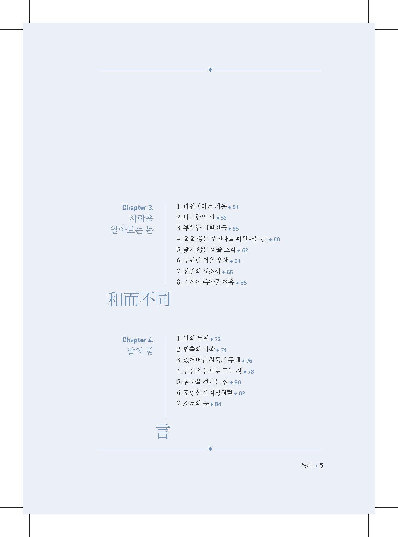원문의 깊이는 살리고 현대적 언어로 친절하게 풀어썼습니다. 각 장 끝에 놓인 질문들은 닫힌 해석이 아닌, 당신만의 답을 찾도록 이끌어줍니다. 삶의 무게가 버거울 때, 곁에 두고 펼쳐보세요. 수천 년을 이어온 지혜가 당신의 오늘을 지켜줄 것입니다.