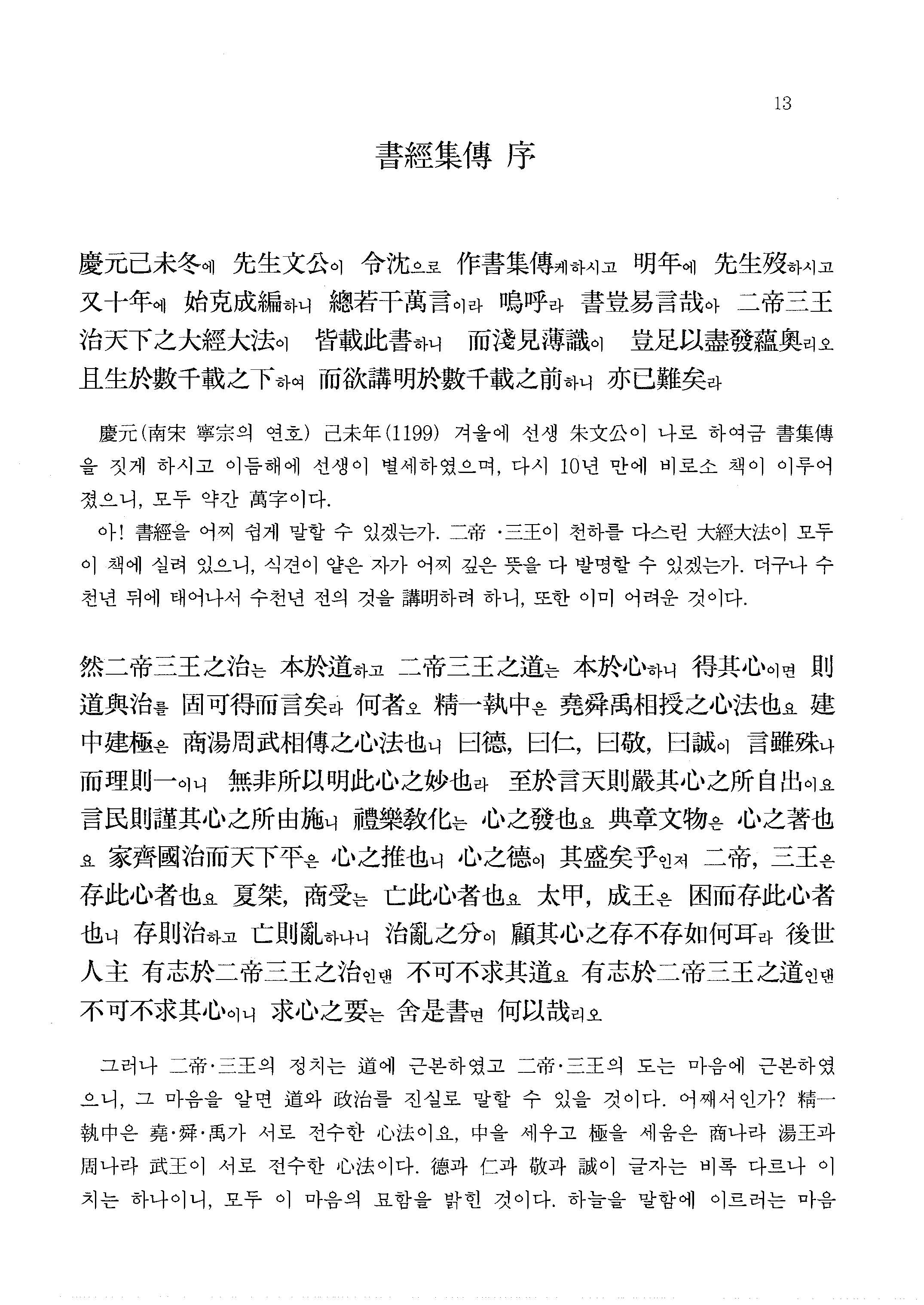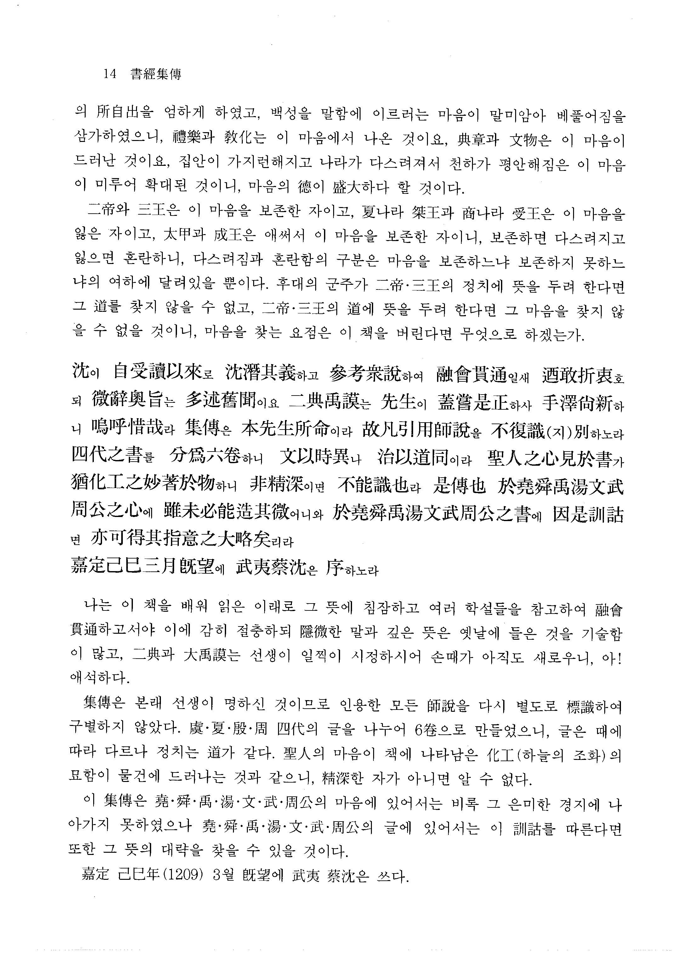 하지만 난해한 원문으로 번역의 한계가 있었다. 본서는 영락대전본을 바탕으로 陳師凱의《蔡傳旁通》, 林之奇의《尙書全解》, 그리고 일본의 한문대계 및 퇴계의 삼경석의, 사계의 경서변증, 성호의 질서 등을 참고하여 엄밀하게 직역하였다.